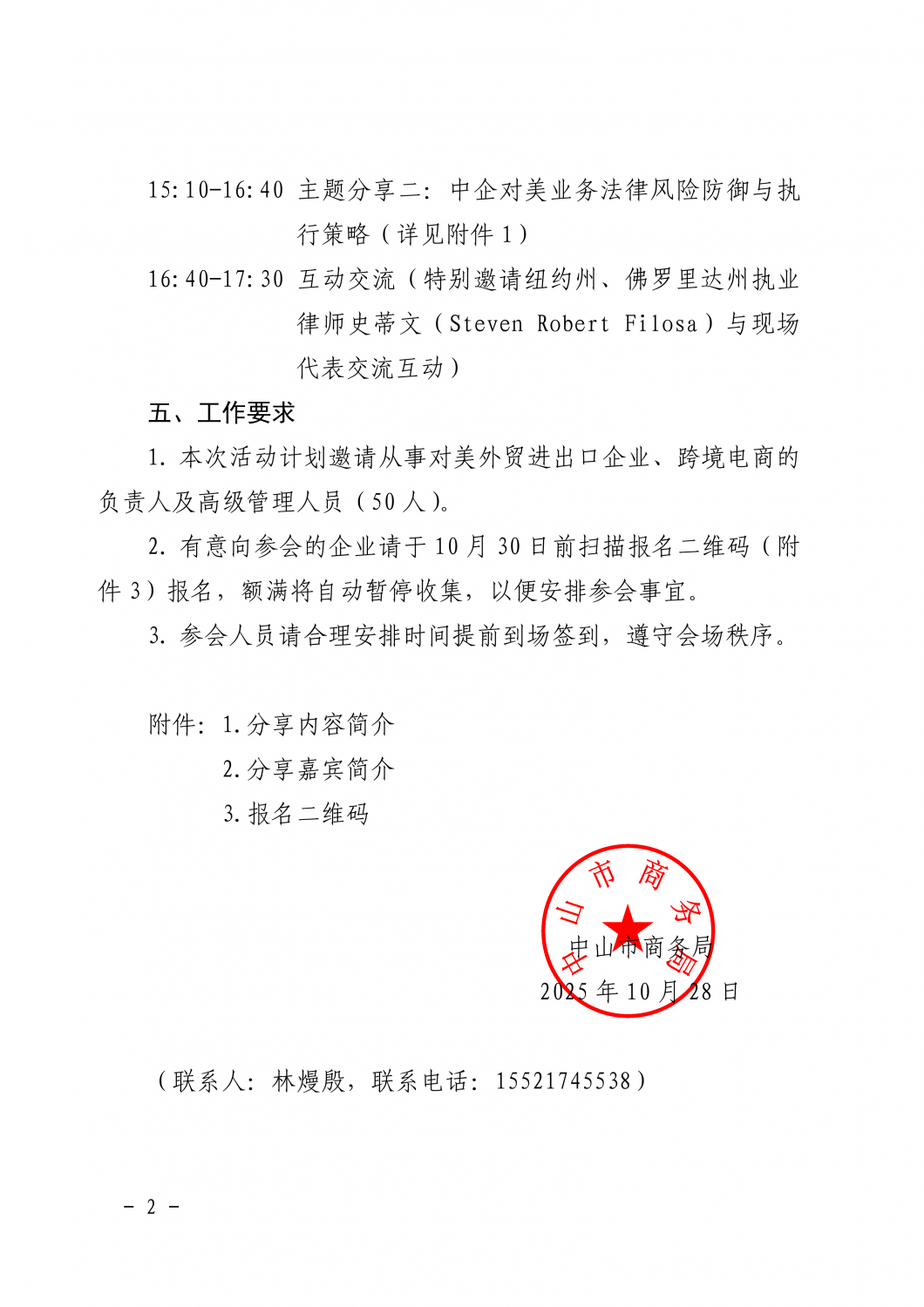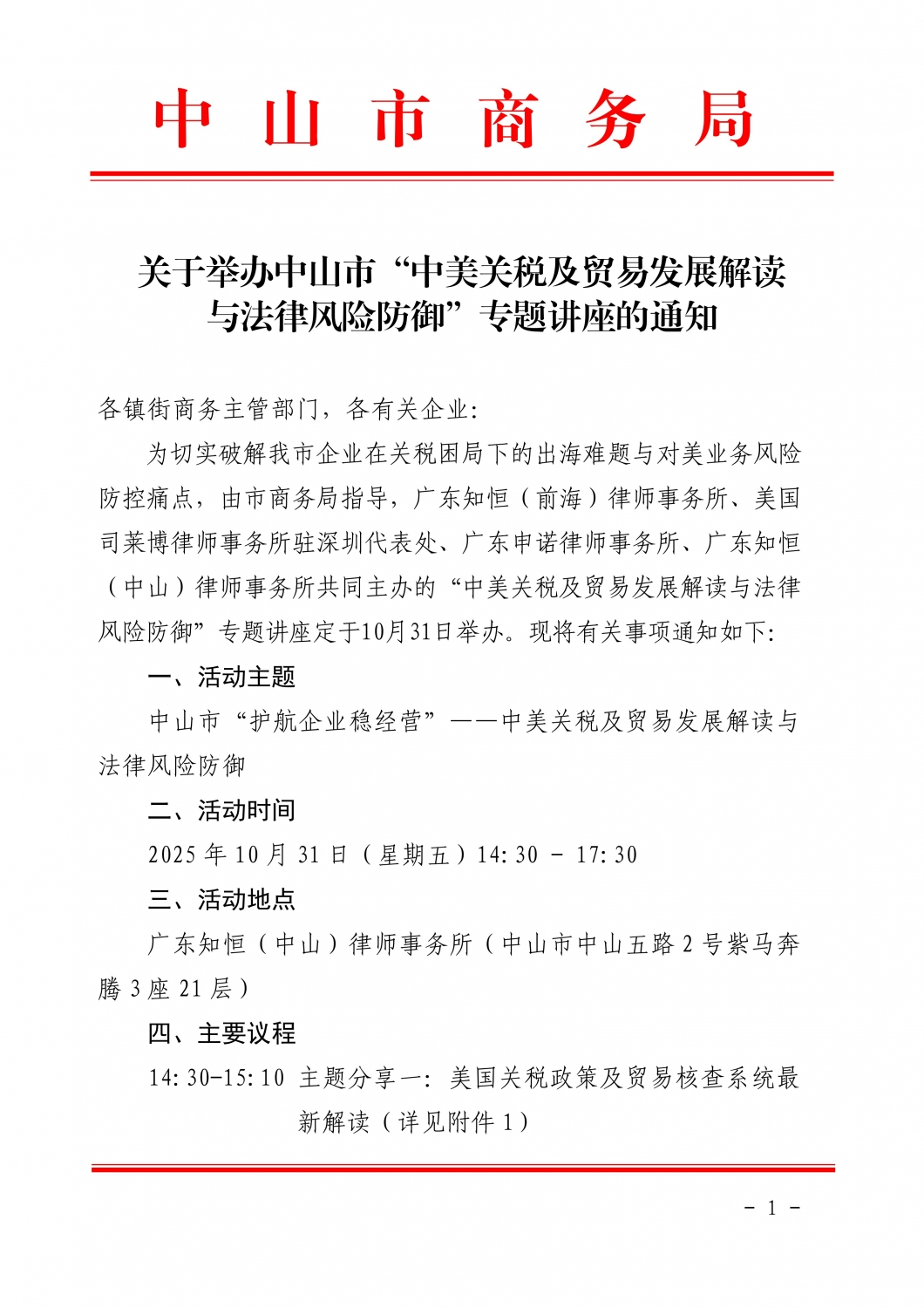 关于举办中山市“中美关税及贸易发展解读与法律风险防御”专题讲座的通知