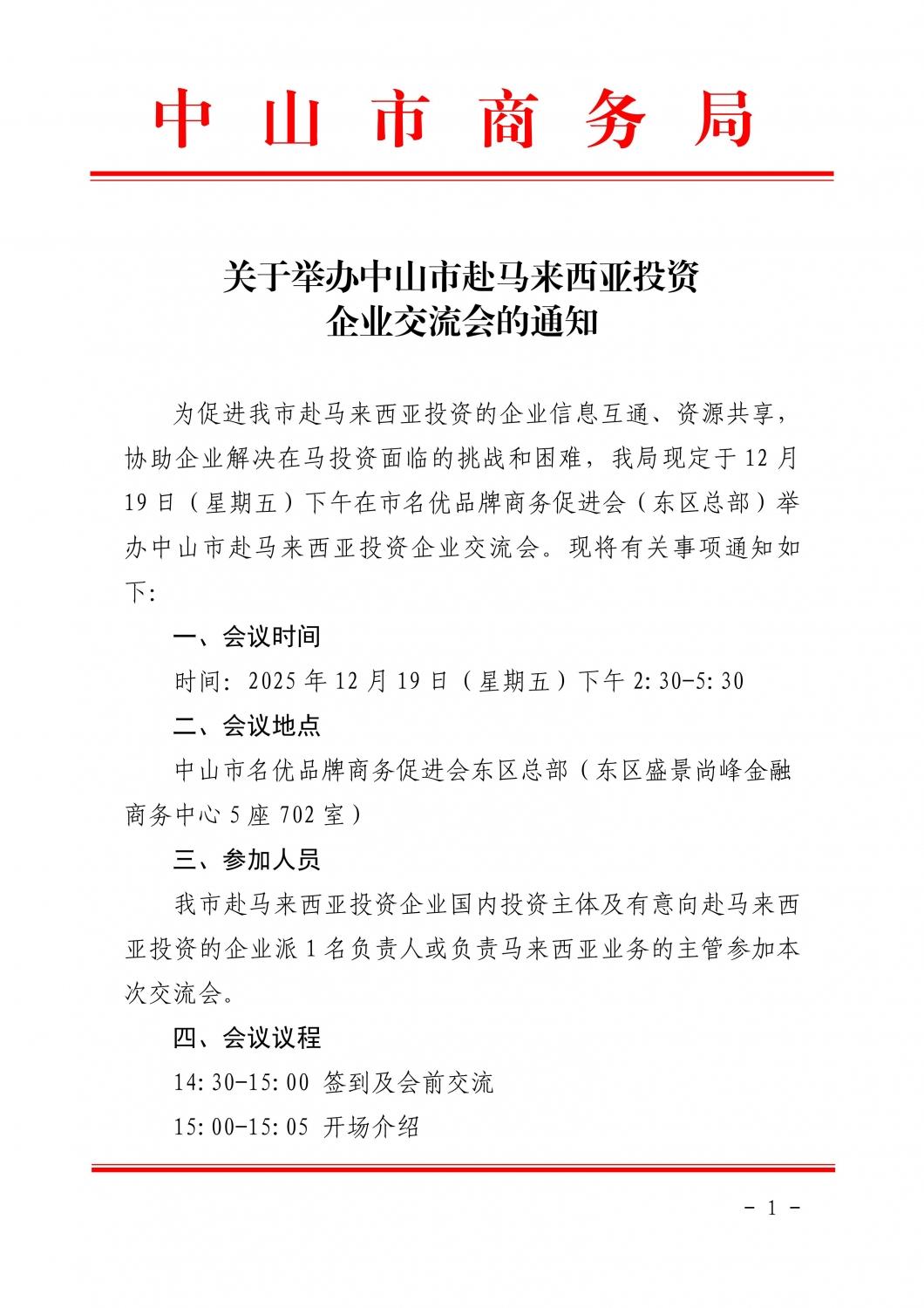 关于举办中山市赴马来西亚投资企业交流会的通知