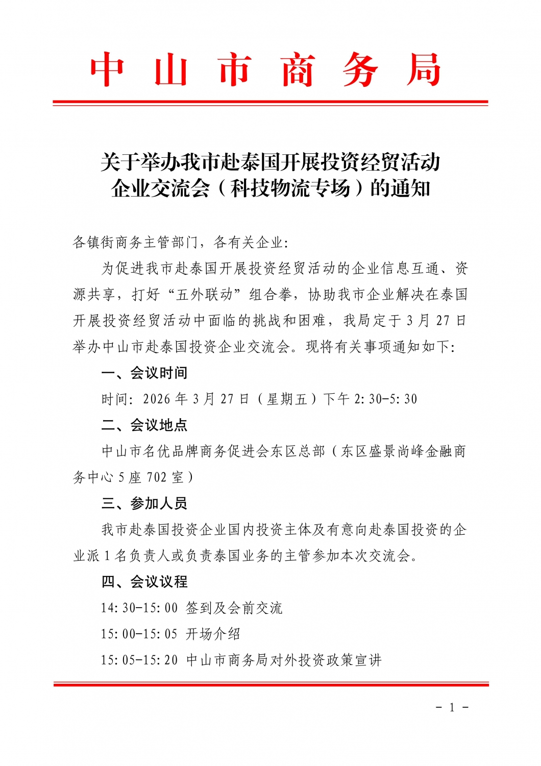 关于举办我市赴泰国开展投资经贸活动企业交流会(科技物流专场)的通知