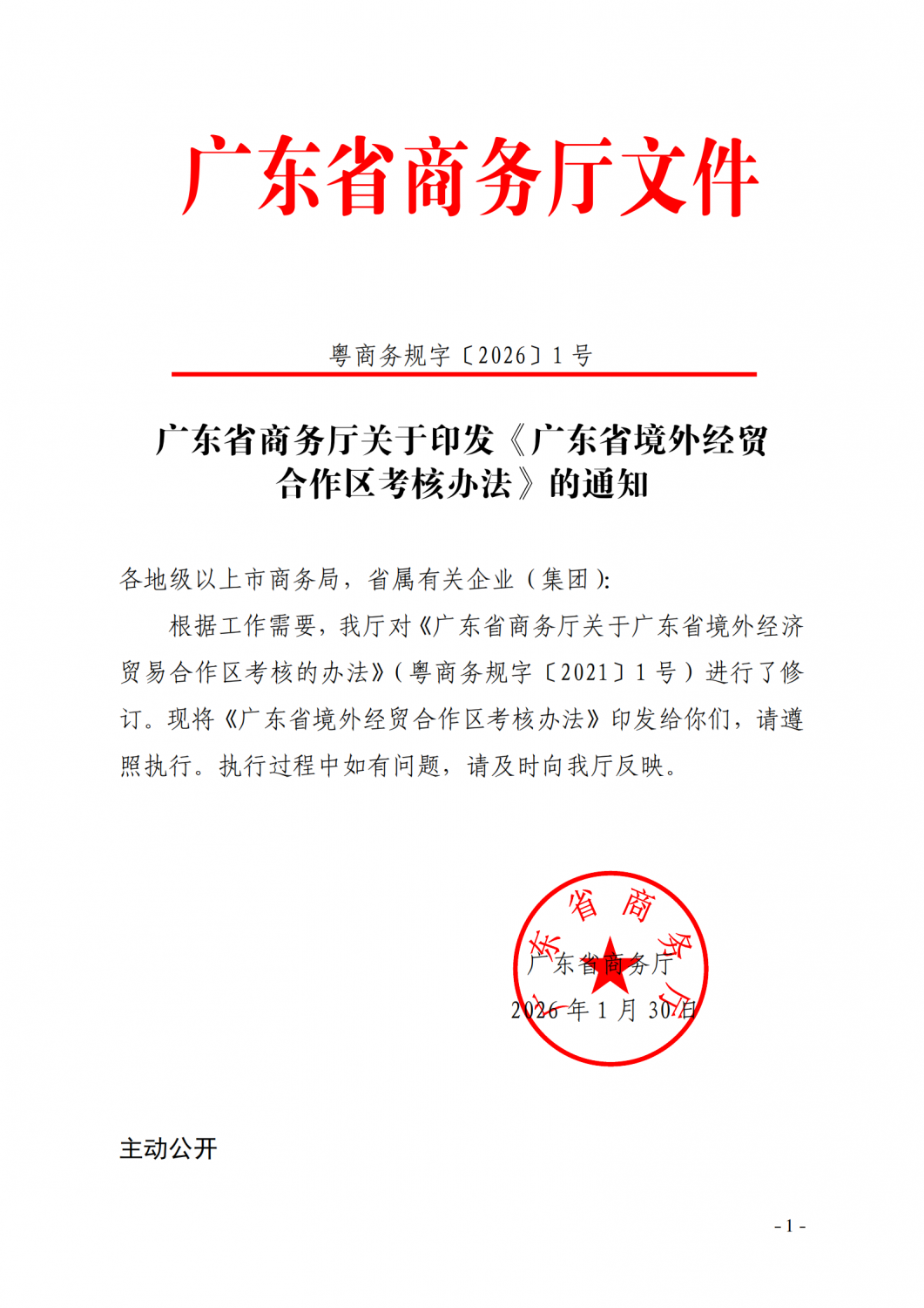 > 广东省商务厅关于印发《广东省境外经贸合作区考核办法》的通知